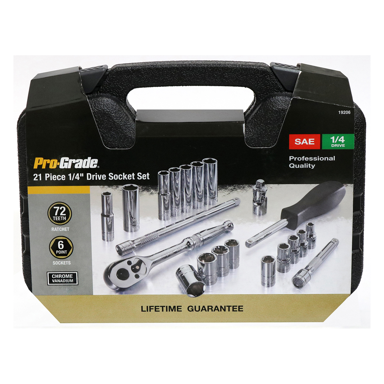 Pro-Grade 21-Piece 1/4in Drive SAE Socket Set with Storage Case, 19206