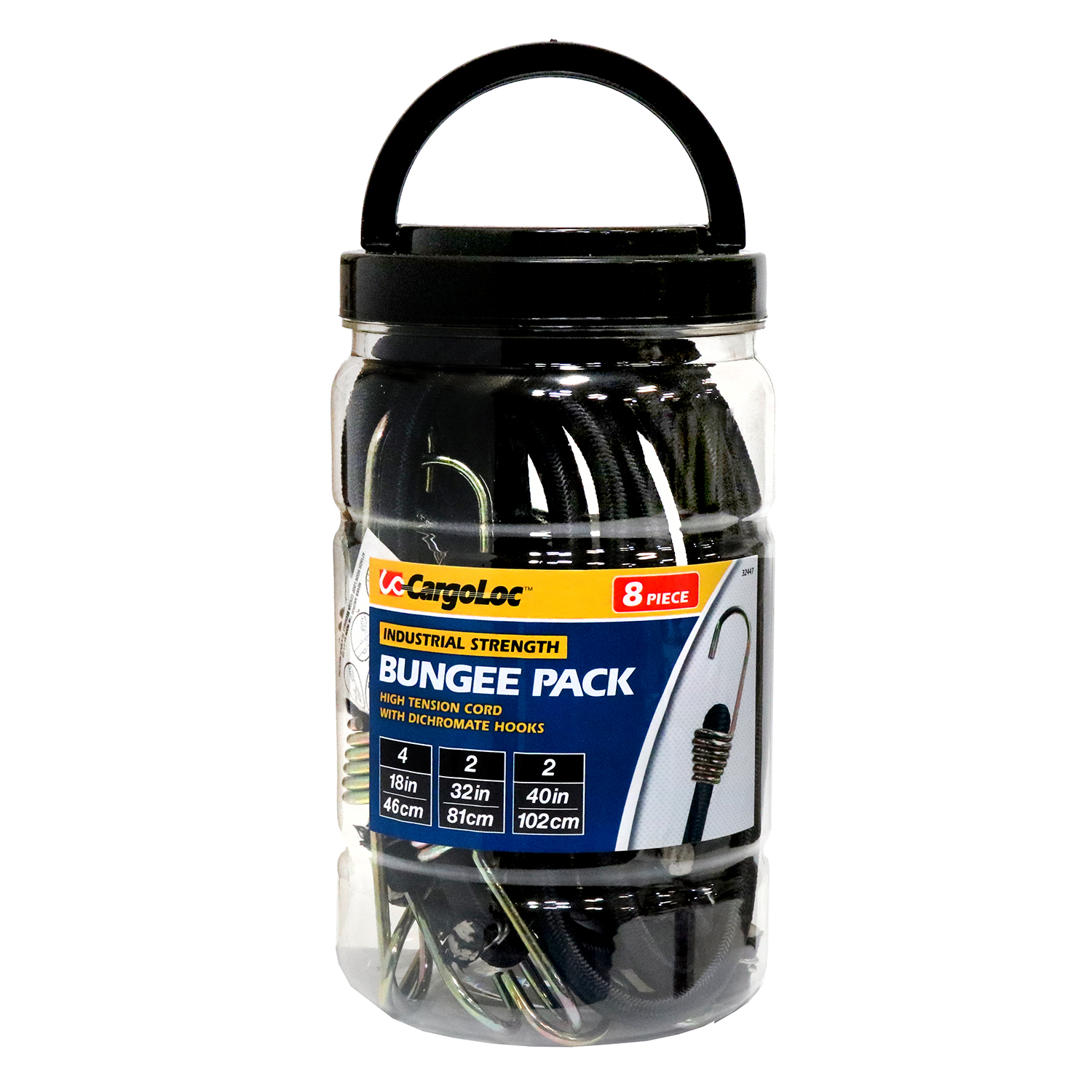 CargoLoc 8 Pc Black Industrial Bungee Cord Assortment, Dichromate Steel Hooks, 32447
