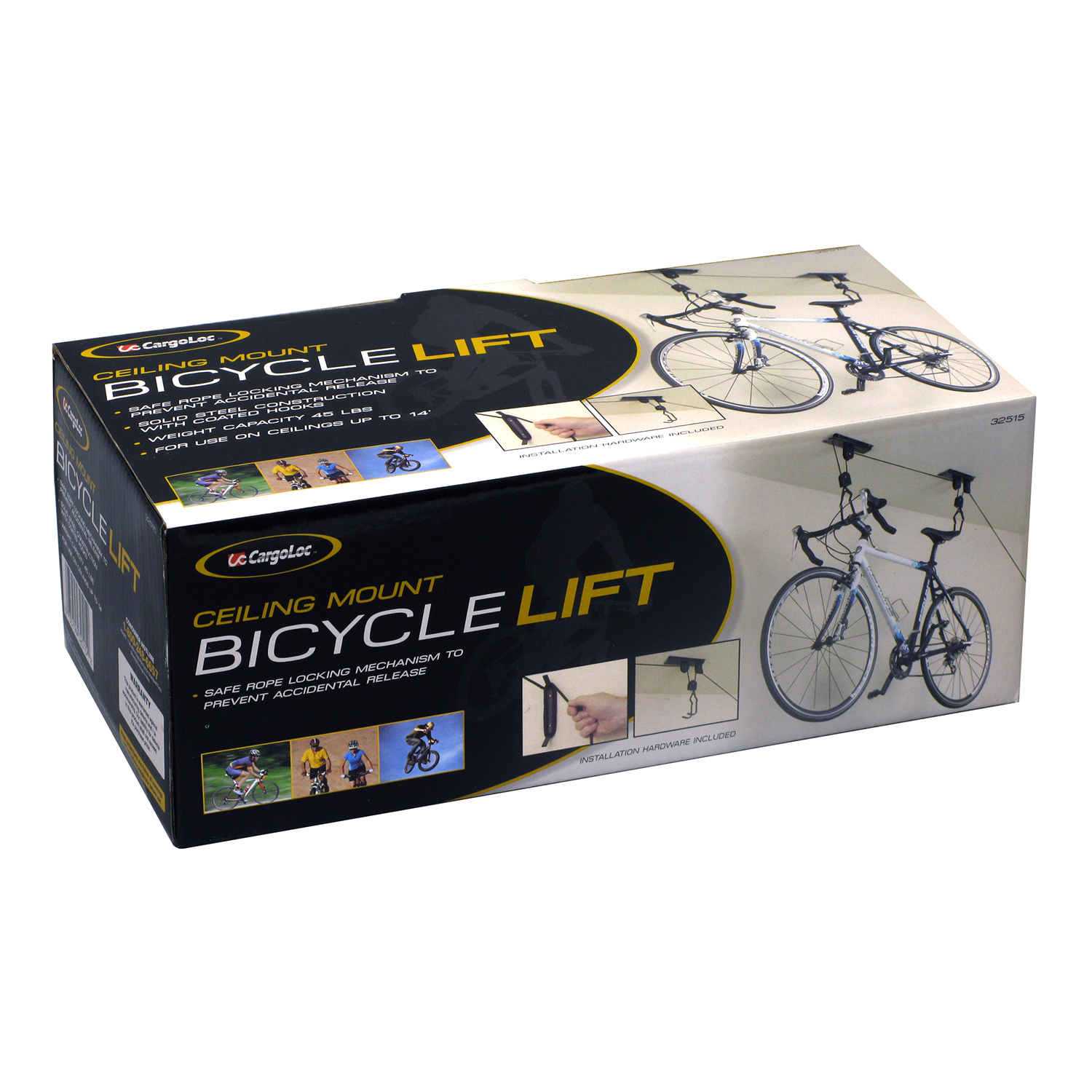 - This bicycle ceiling lift uses a rope and pulley system to easily store your bicycle overhead and free up extra garage space.