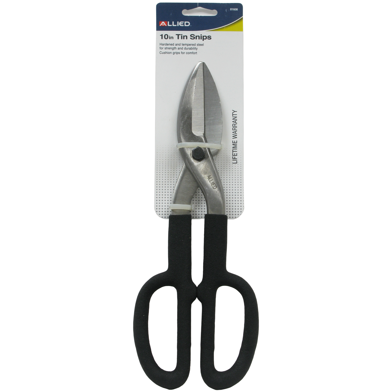 Allied International's 10" Tin Snips, Straight Cut with Cushioned Grip, #81608