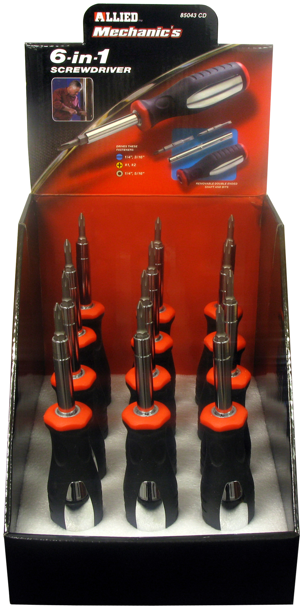 Allied International's 6-in-1 Screwdriver (Counter Display), #85043CD