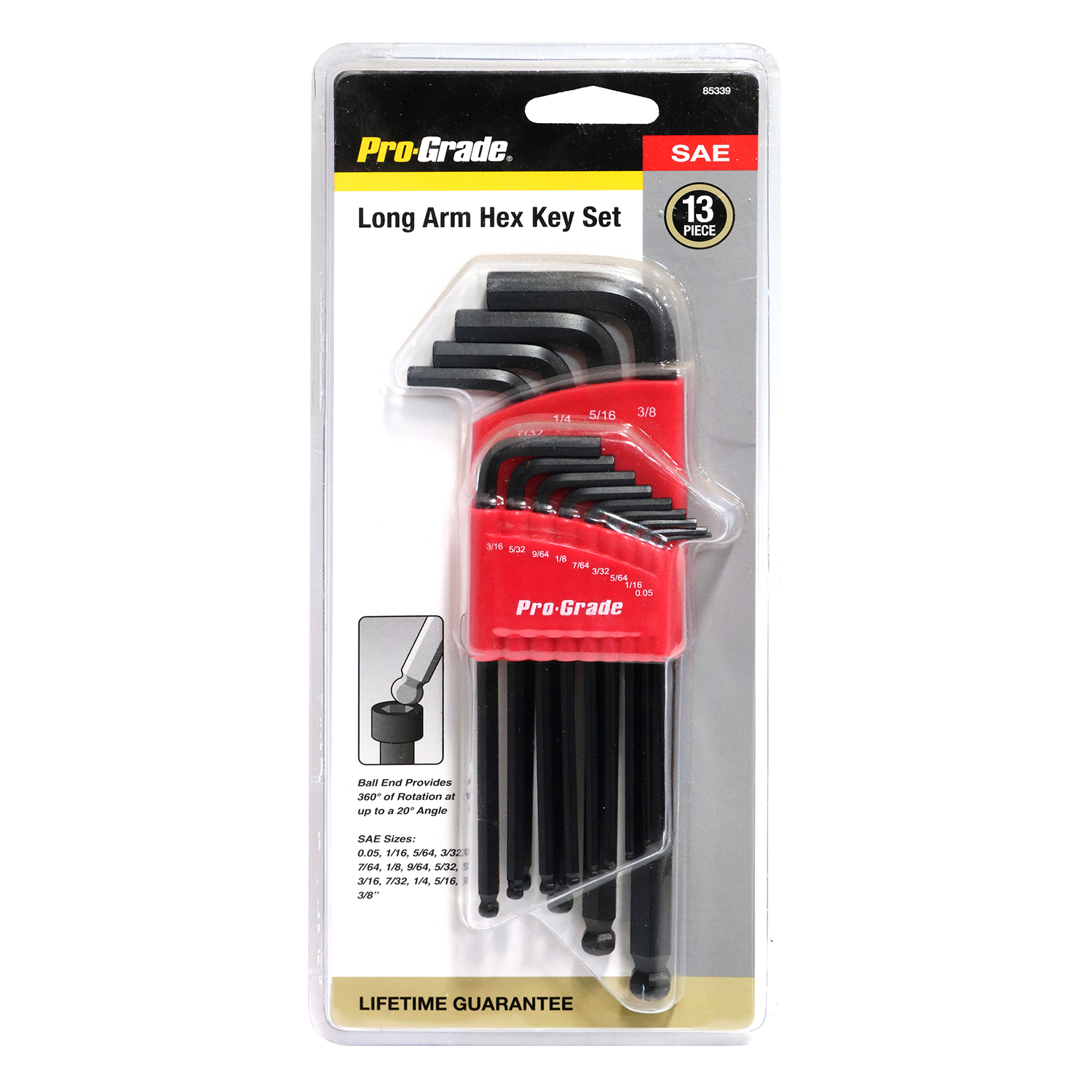 Pro-Grade 13-Piece SAE Long Arm Hex Key Set with Ball Ends, 85339