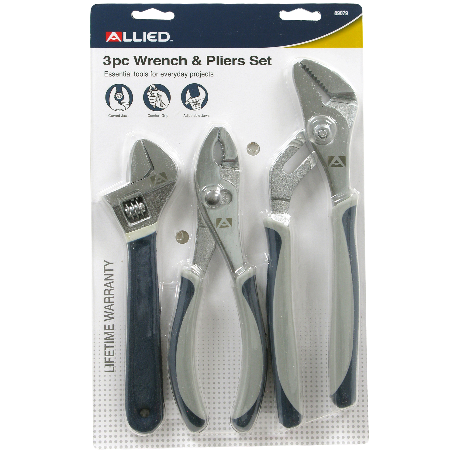 Allied International's 3-piece Pliers and Adjustable Wrench Set: Slip Joint Pliers, Groove Joint Pliers, Adjustable Wrench, #89079